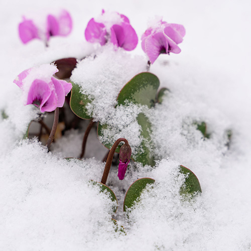 シクラメンは、パンジーやビオラに次ぐ冬に大活躍する花苗の1つで、サクラソウ科シクラメン属の球根植物です。シクラメンの花言葉は「遠慮」「内気」です。日本人が美しいとする奥ゆかしさを備えた可愛らしい品種が数多く存在します。