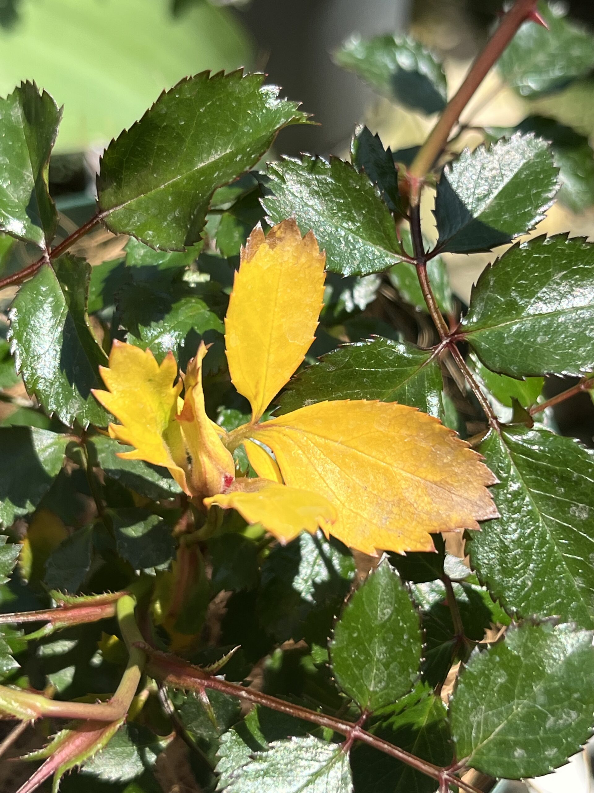 黒星病は、葉や茎に黒い斑点ができます。病気にかかった葉は黒い斑点の周りから黄色く変色していき、やがて葉が落ちます。梅雨と秋雨の時期は特に注意しましょう